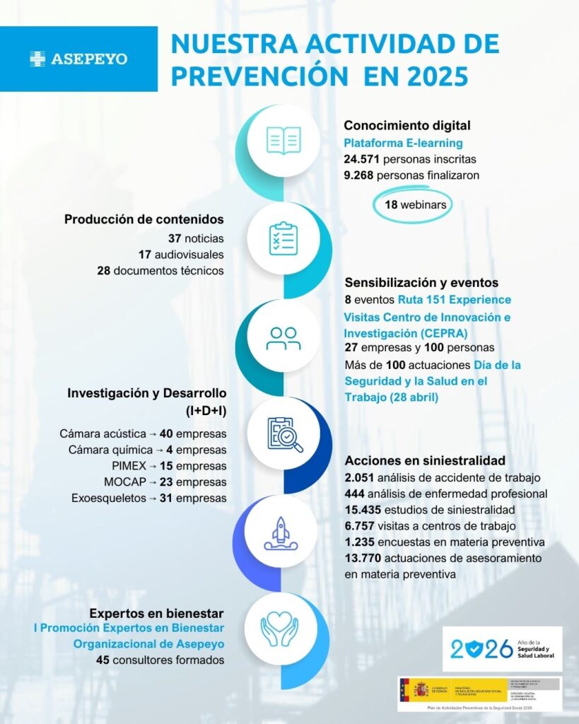 Además, seguimos avanzando en I+D+i preventiva y en la sensibilización y conocimiento para empresas y trabajadores.